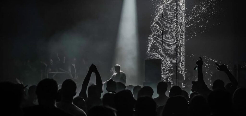 Ao contrário de grandes eventos que exploram todos os recursos visuais possíveis, o projeto aposta no minimalismo; a escuridão é tão importante quanto a luz. Os momentos de sombra profunda intensificam cada explosão de claridade, sincronizada com viradas e clímax musicais. O foco não é apenas no palco, mas em toda a sala, colocando o público no centro da experiência e dissolvendo a barreira entre artista e pista.